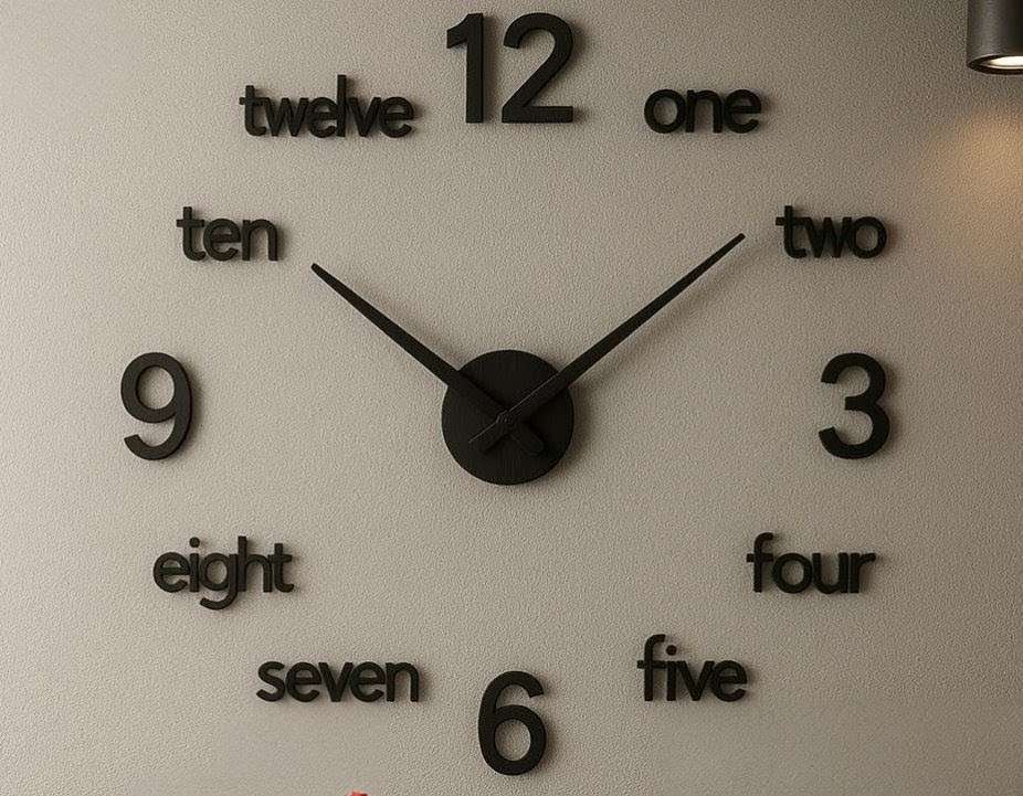 Large wooden DIY clock with 12-inch needles.