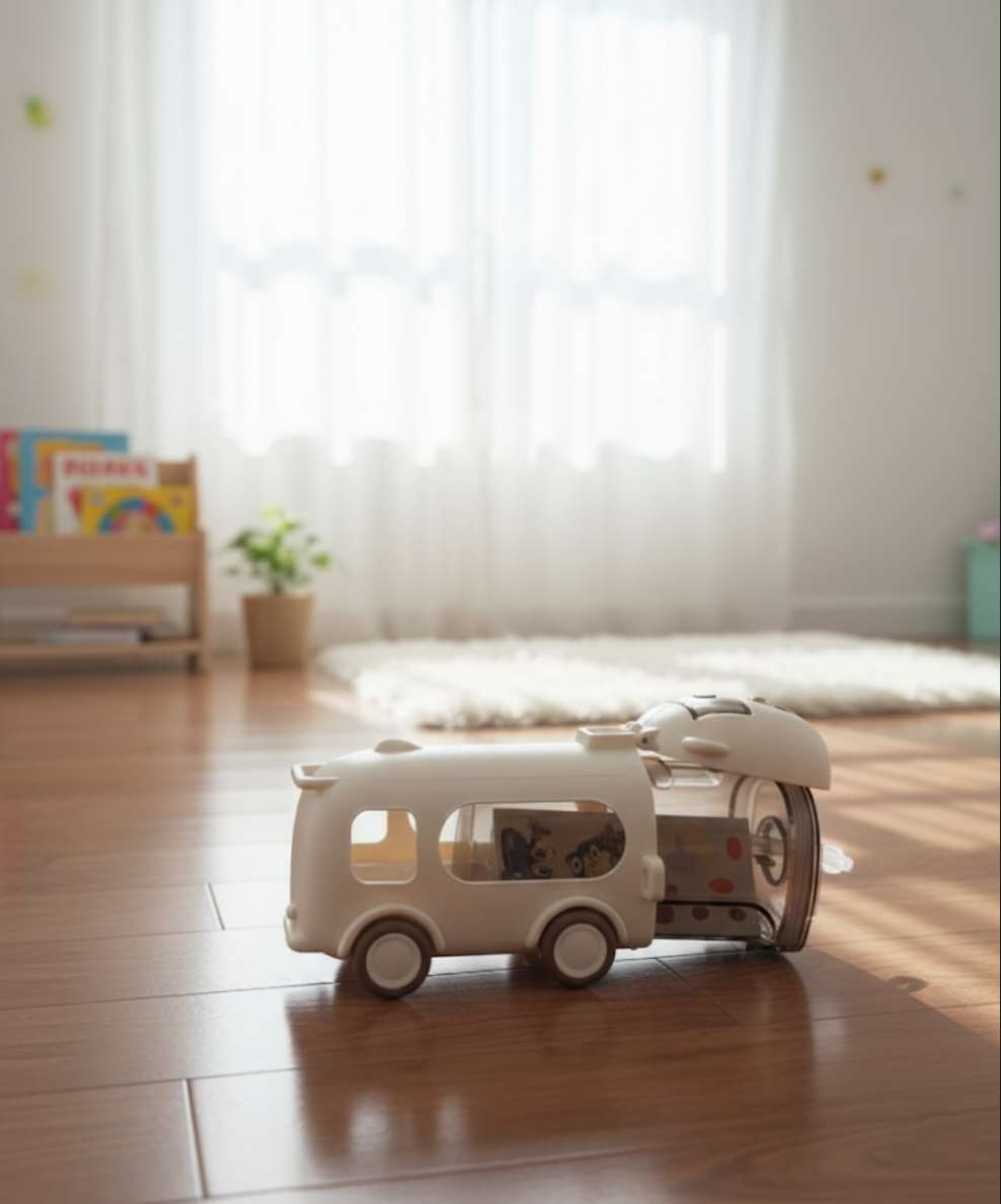 Fun and functional bus water bottle for kids. Comes with wheels, straw, strap, and stickers. Perfect for school, sports, and travel